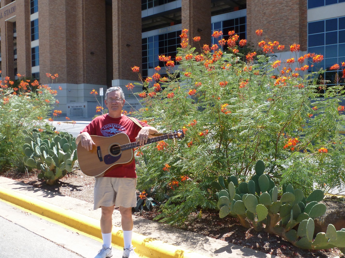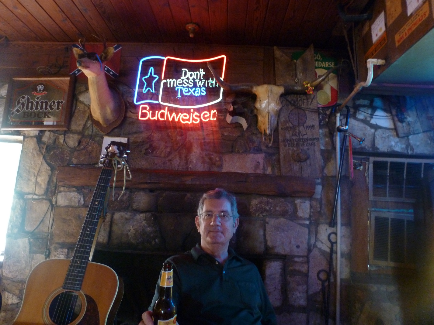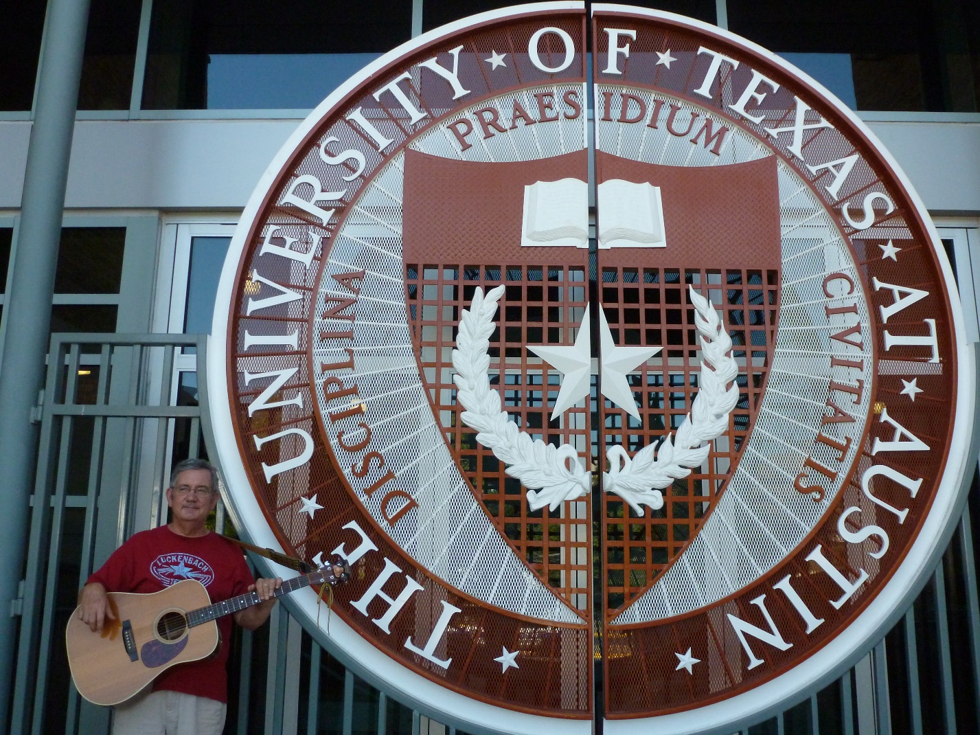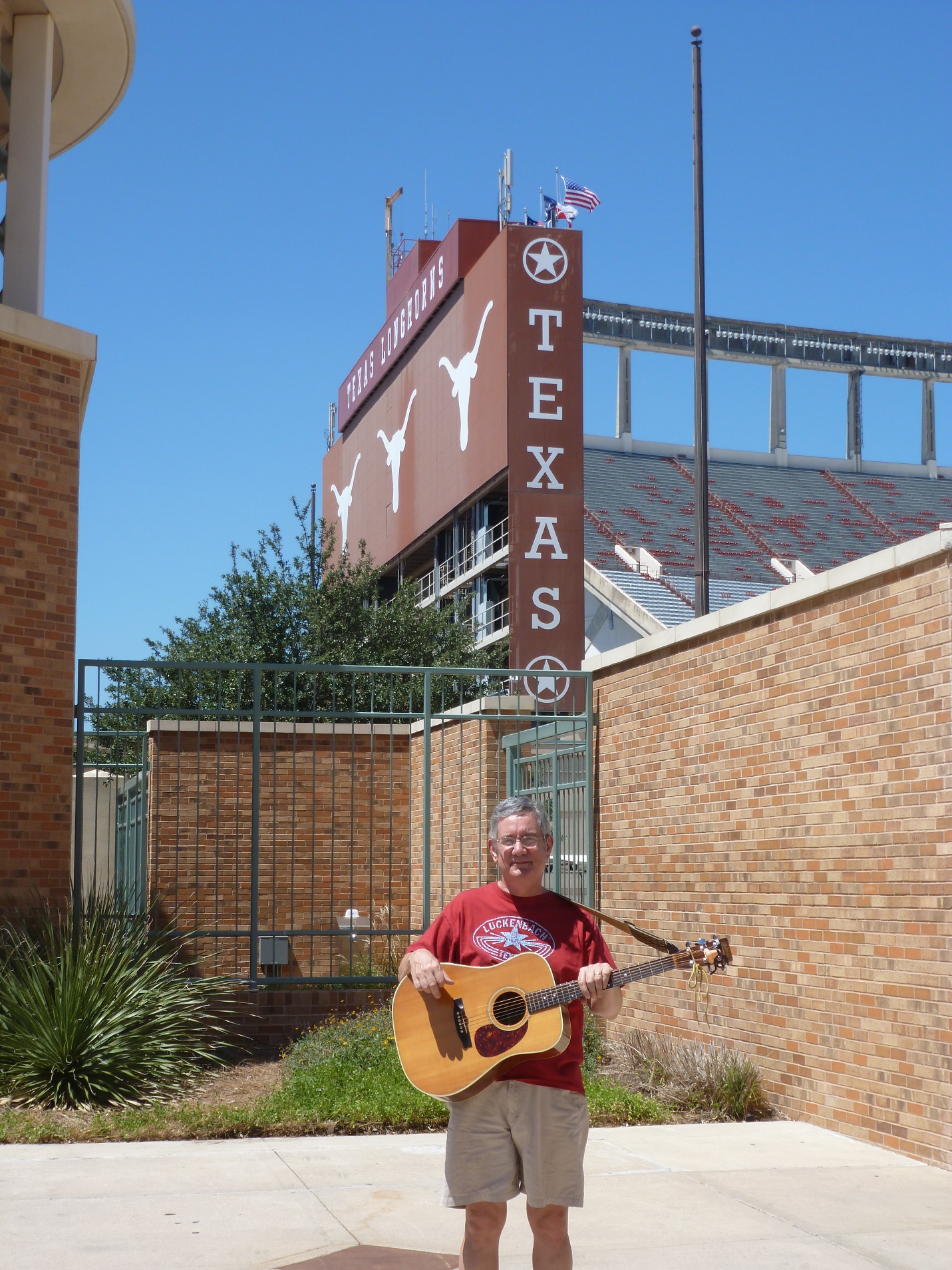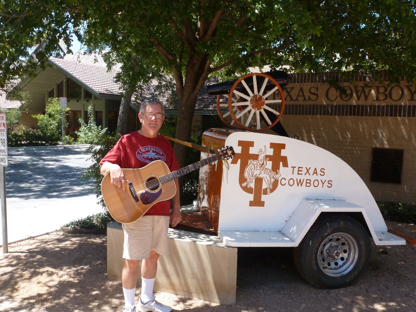 Marty and I are at the Willie Nelson statue in downtown Austin. Willie’s guitar, Trigger, has always been Marty’s hero because he can still play beautiful music even with that extra hole in his side that Willie wore through. By the way, Trigger and Marty just happen to be distant relatives.